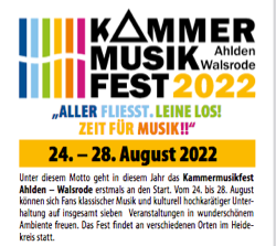 - [04.08.2022] Kammermusikfest Ahlden – Walsrode debütiert im Heidekreis