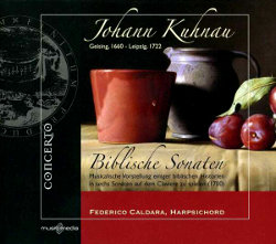 In der Nachfolge von Johann Schelle und als direkter Vorgänger von Johann Sebastian Bach war Johann Kuhnau einer der bedeutendsten Thomaskantoren in Leipzig. Seine kirchlichen Werke verbreiteten sich allerdings kaum über Leipzig hinaus, so dass er in dieser Hinsicht wenig einflussreich wirkte. Dagegen nimmt Kuhnau eine besondere Bedeutung als Klavierkomponist ein: Er gilt als Schöpfer der deutschen Klaviersonate. Seine Kompositionen für „Clavier“ „Neue Clavier-Übung“ (2 Teile zu je 7 Suiten), „Frische Clavier-Früchte oder sieben Sonaten von guter Invention und Manier“ und „Musicalische Vorstellung Einiger Biblischer Historien. In 6 Sonaten auff dem Claviere zu spielen“ sind die ersten Beispiele mehrsätziger Sonaten für Klavier nach dem Muster der italienischen Triosonate. Als Thomaskantor verfasste Kuhnau freilich eine große Anzahl an Kirchenkantaten in allen Stilarten, von denen allerdings nur 20 überliefert sind. Seine weltlichen Chorwerke sind gänzlich verloren. Johann Kuhnau wurde am 6. April 1660 in Geising in Sachsen geboren. Nachdem sein älterer Bruder Andreas Diskantist an der Dresdner Kreuzkirche war, wurde Johann um 1670 auf Vermittlung seines Cousins ebenfalls Chorknabe im Dresdner Kreuzchor. Hier erhielt er die musikalischen wie auch theoretischen Grundlagen, die ihm 1682 das Studium der Philosophie und Rechtswissenschaft in Leipzig ermöglichten. 1684 wurde Kuhnau Organist an der Thomaskirche in Leipzig und 1701 Universitätsmusikdirektor und Thomaskantor. Bedeutende Musiktheoretiker seiner Zeit wie Jakob Adlung, Johann Mattheson oder auch Arnold Schering schätzten ihn als einen der größten Komponisten, Organisten und Chorleiter seiner Zeit. Kuhnau war darüber hinaus aber auch als Jurist hoch geachtet, er verfasste mehrere Romane, darunter den satirischen Roman „Der Musicalische Quack-Salber“ sowie verschiedene musikalische Abhandlungen und betätigte sich auch als Übersetzer. Er gilt als einer der Universalgelehrten des Barock. Unliebsame Konkurrenz entstand Kuhnau jedoch, als mit der Eröffnung des Leipziger Opernhauses und der Gründung eines Collegium musicum der junge Georg Philipp Telemann nach Leipzig kam und 1704 Organist und Musikdirektor an der Leipziger Neukirche wurde. Aber auch als Telemann Leipzig verlassen hatte, verlor Kuhnau beim Leipziger Stadtrat und den Leipziger Bürgern mehr und mehr an musikalischer Reputation, was ihn sehr kränkte. Er starb am 5. Juni 1722 in Leipzig.